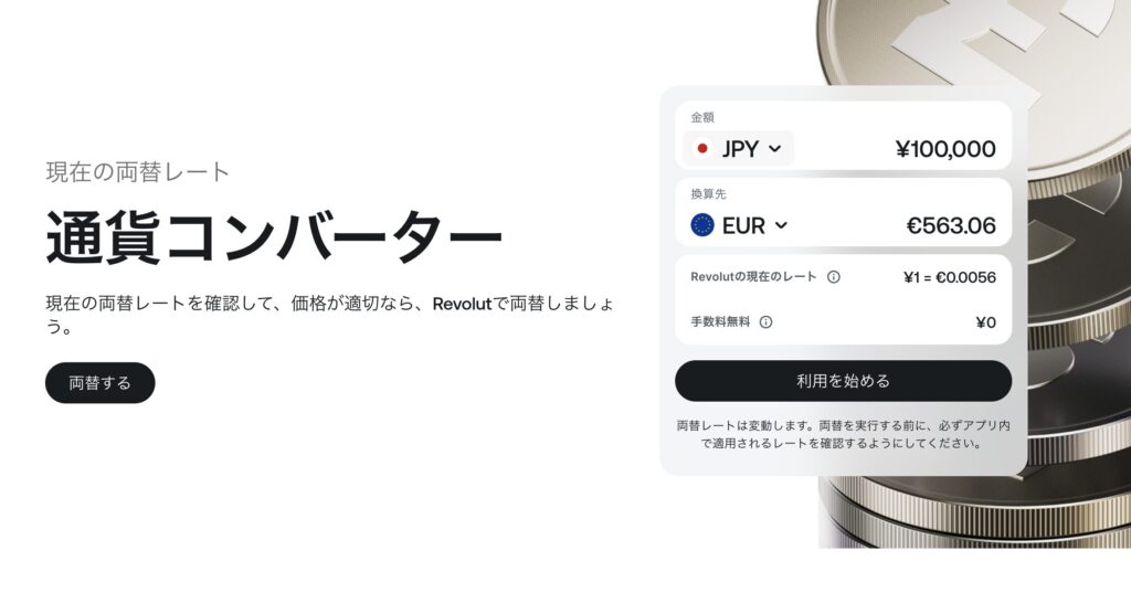 為替レートはRevolutが指定するレートとなりますが、ほとんど市場のレートと同じです。