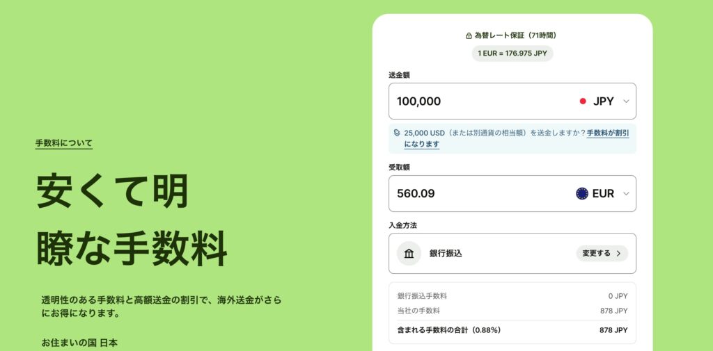 通常の銀行やクレジットカード会社で課される大きなマークアップ(上乗せ料金)がありません。